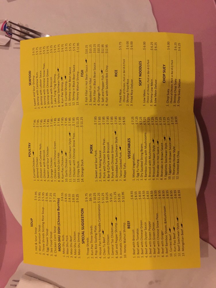 Pork in sweet and sour sauce. Options include egg drop, hot & sour, or wonton soup; fried or steamed rice.